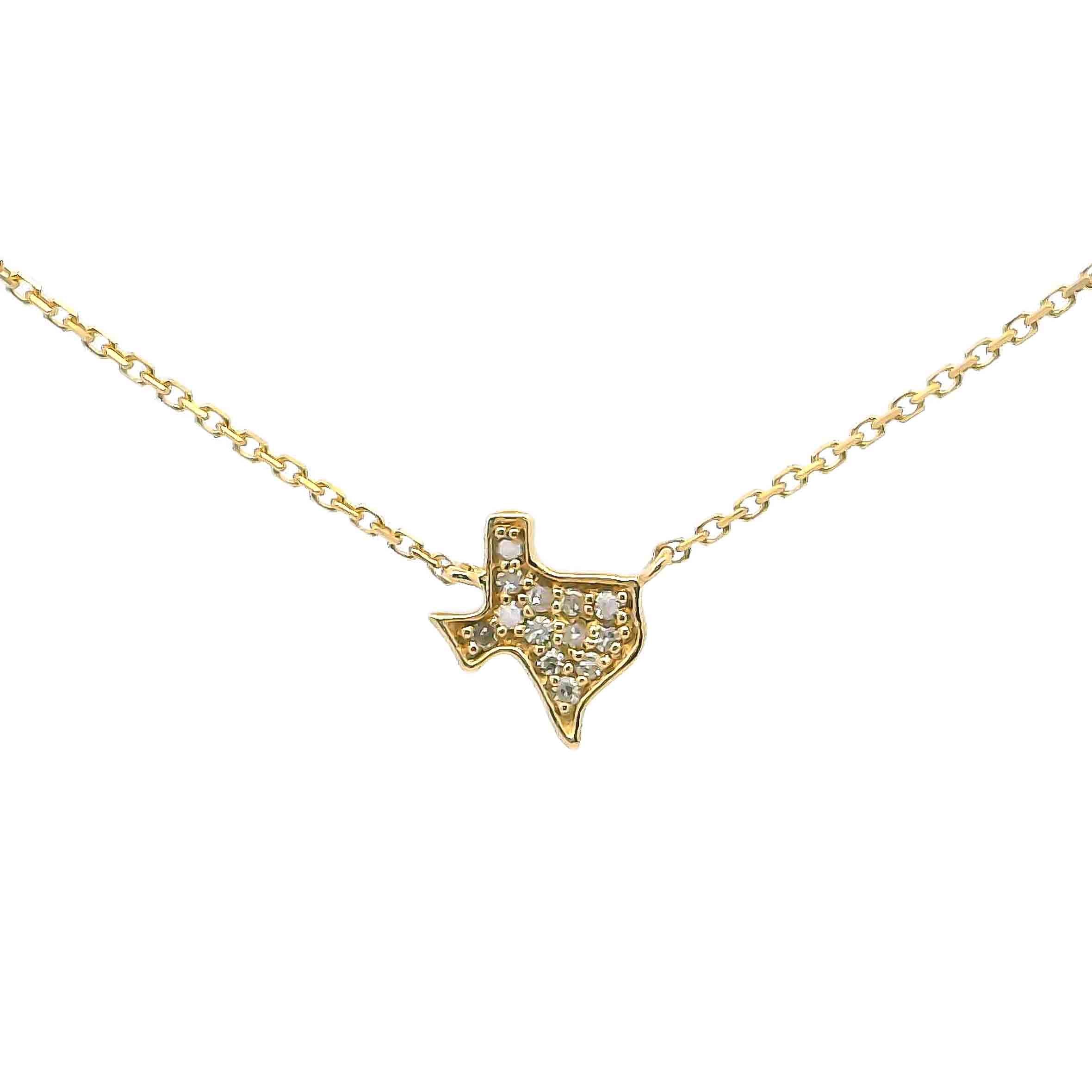 14k yellow gold pave diamond Texas on chain necklace 16-18" 0.04ctw
