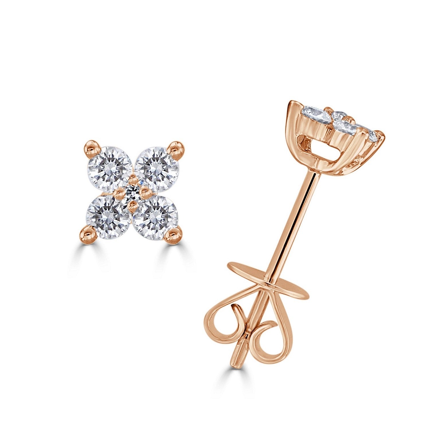 14k rose gold 4 diamond flower stud earrings 0.30ctw