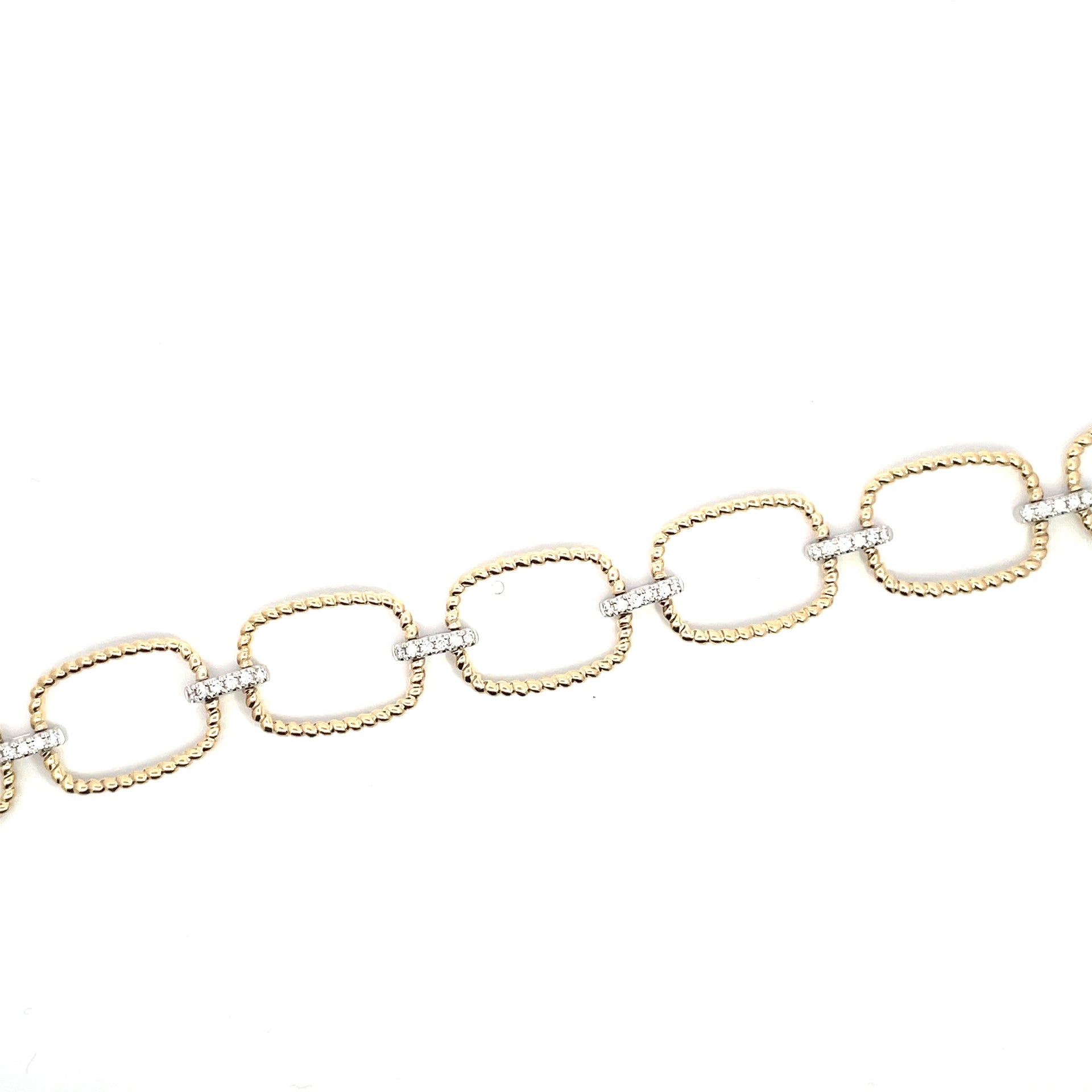 14k two tone open rectangular ropes with diamond bar links bracelet 0.53ctw