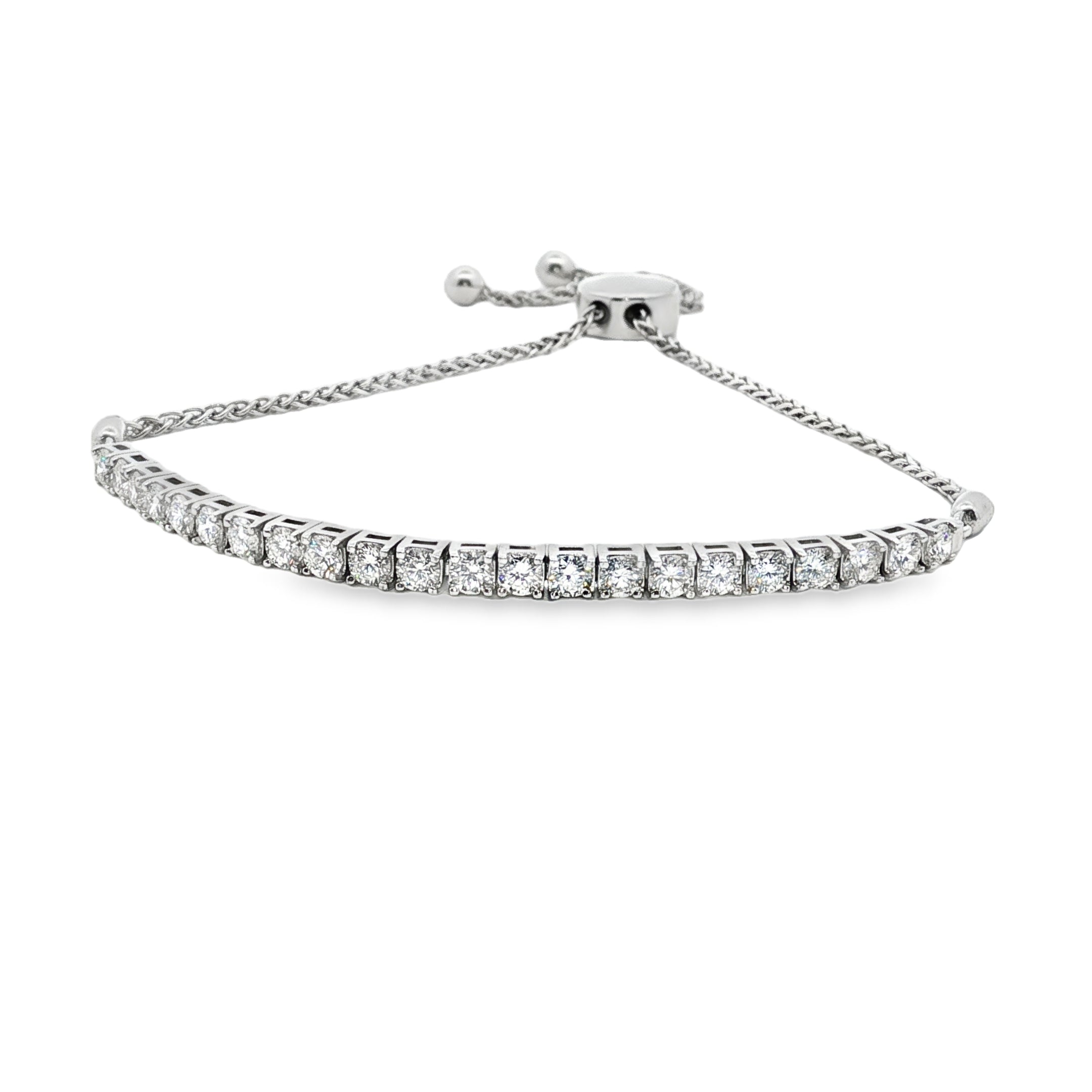 14k white gold half way around diamond bracelet with bolo 22 dia 2.00ctw