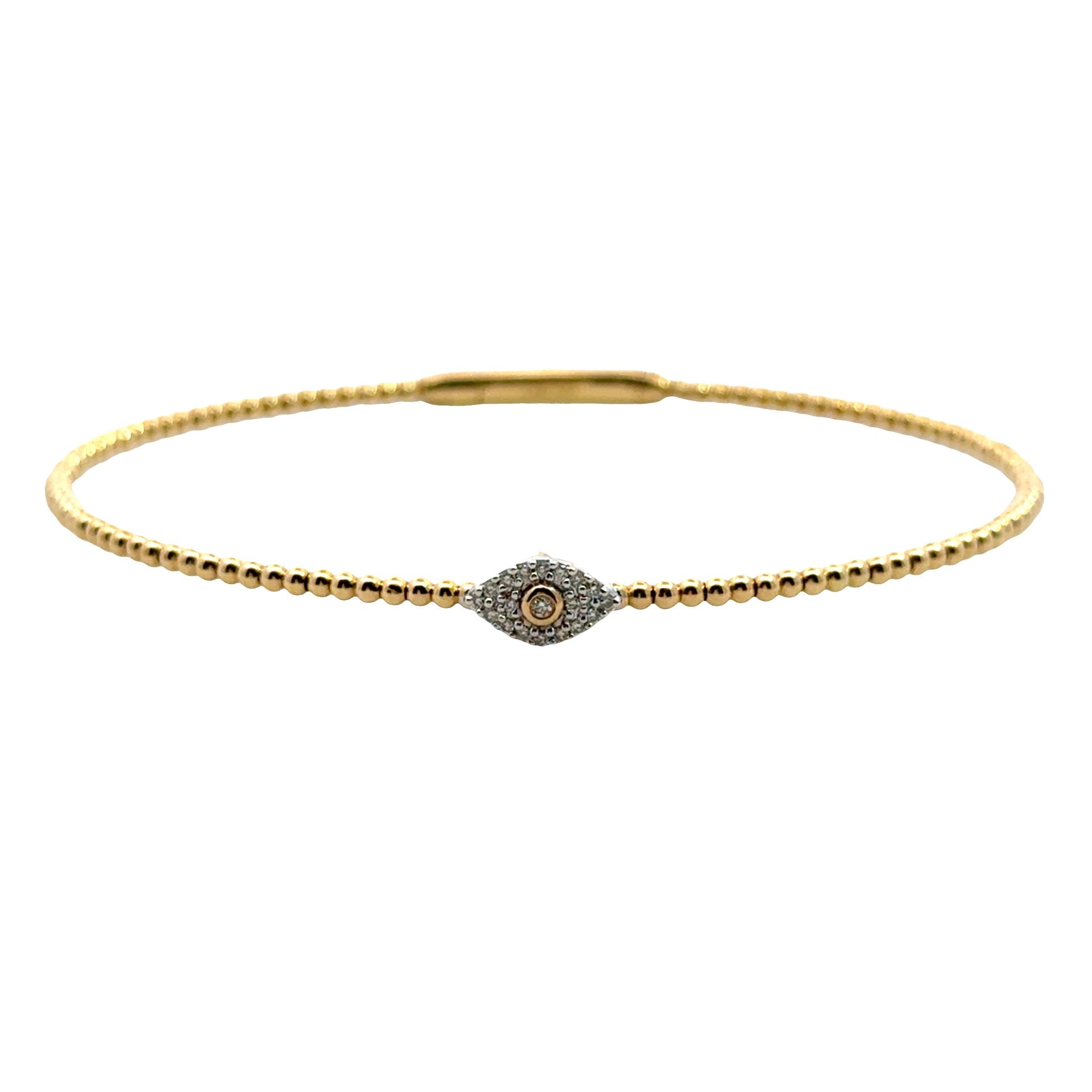 14k yellow gold beaded flexible bracelet with diamond evil eye 0.08ctw