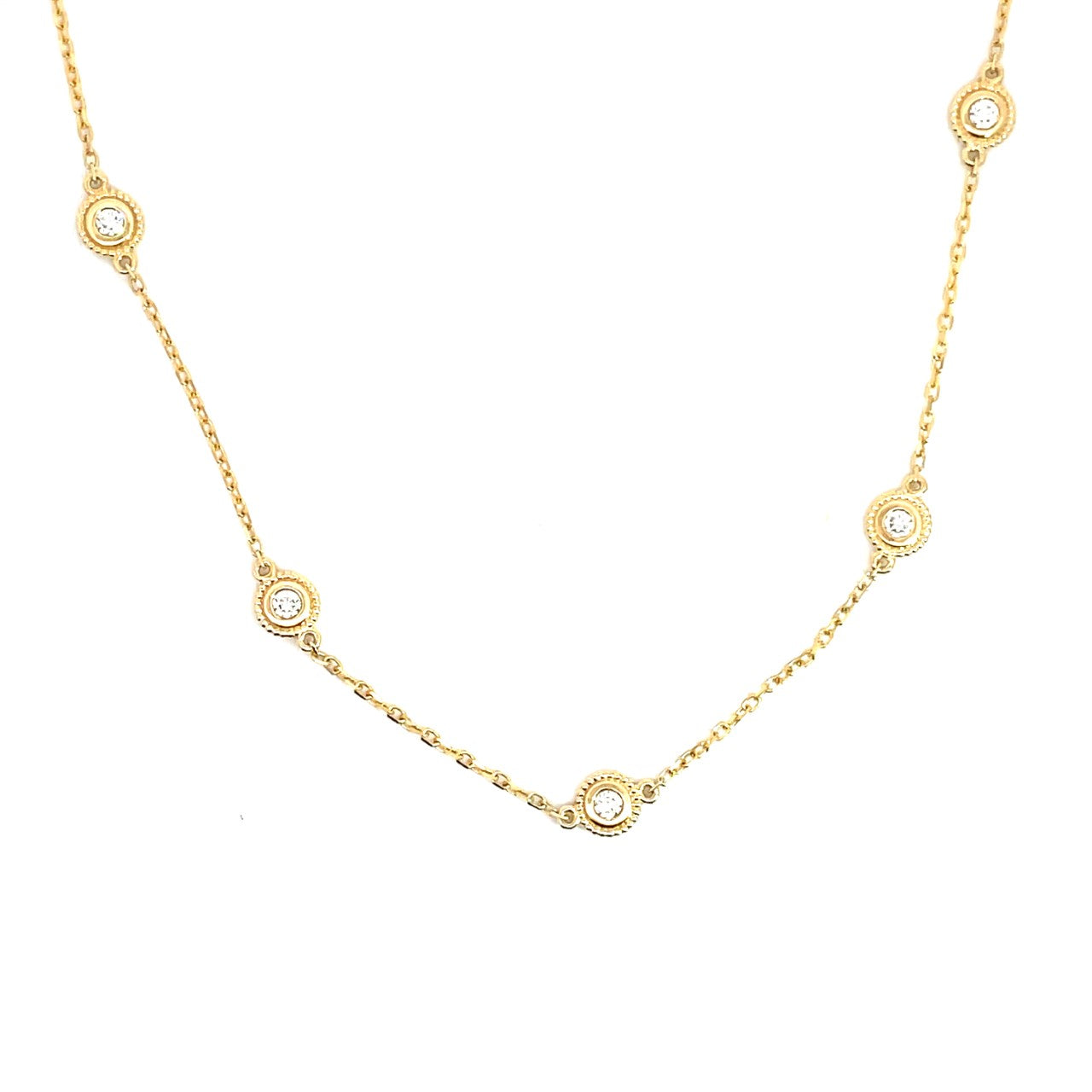 14k yellow gold miligrain bezel set diamonds by the yard necklace 18" 0.62ctw
