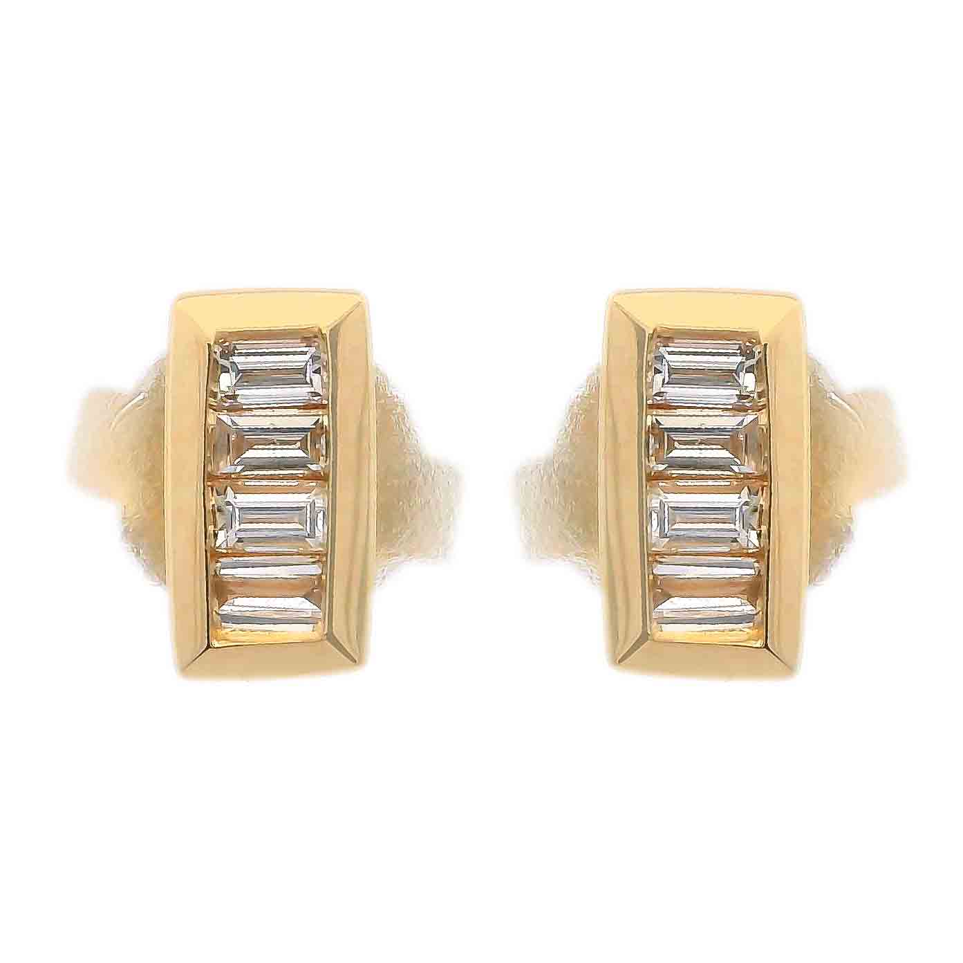 14k yellow gold petite baguette diamond bezel set stud earrings 0.06ctw