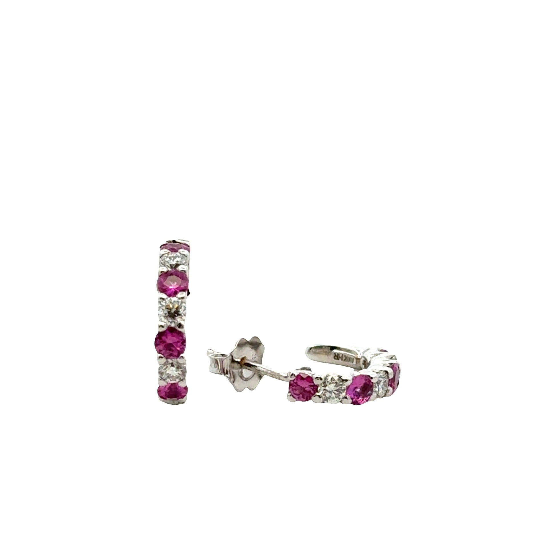 18k white gold half hoop alternating pink sapphire and diamond earrings G VS2 dia 0.40ctw ps 0.82ctw