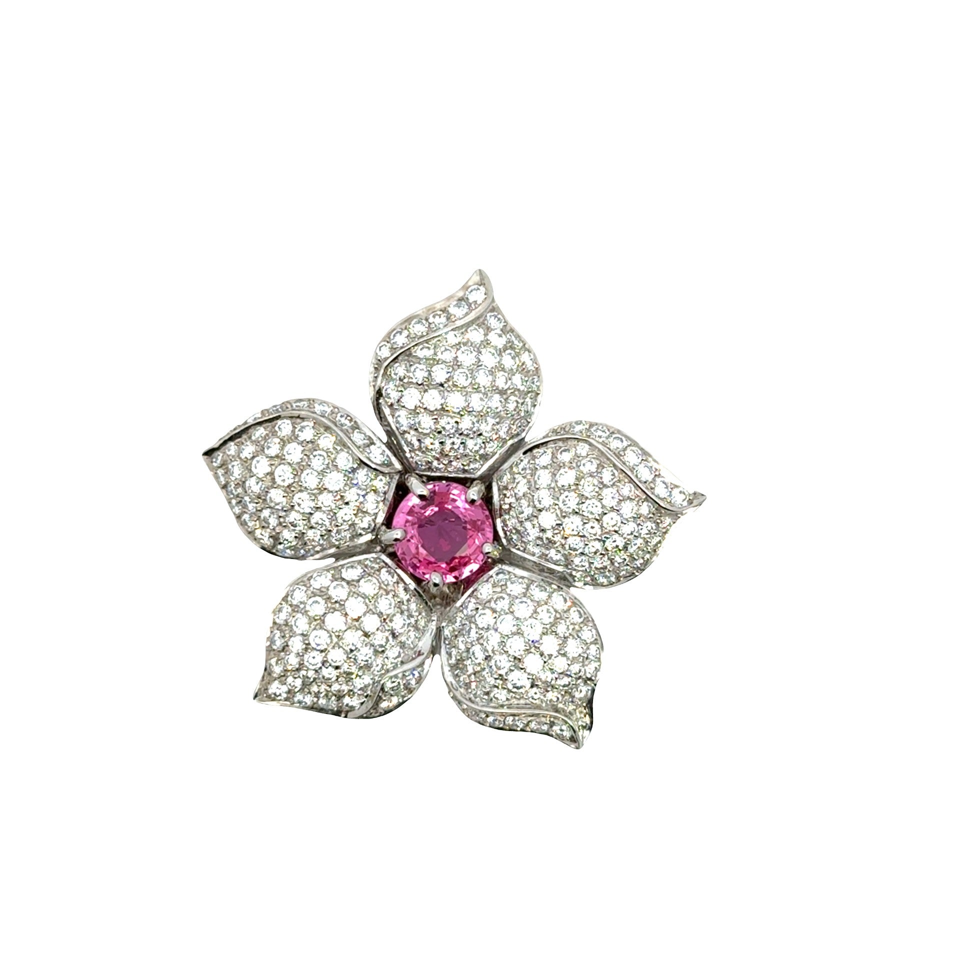 18k white gold pink sapphire center with pave diamond petals flower pin ps 1.88ctw 240dia 3.10ctw