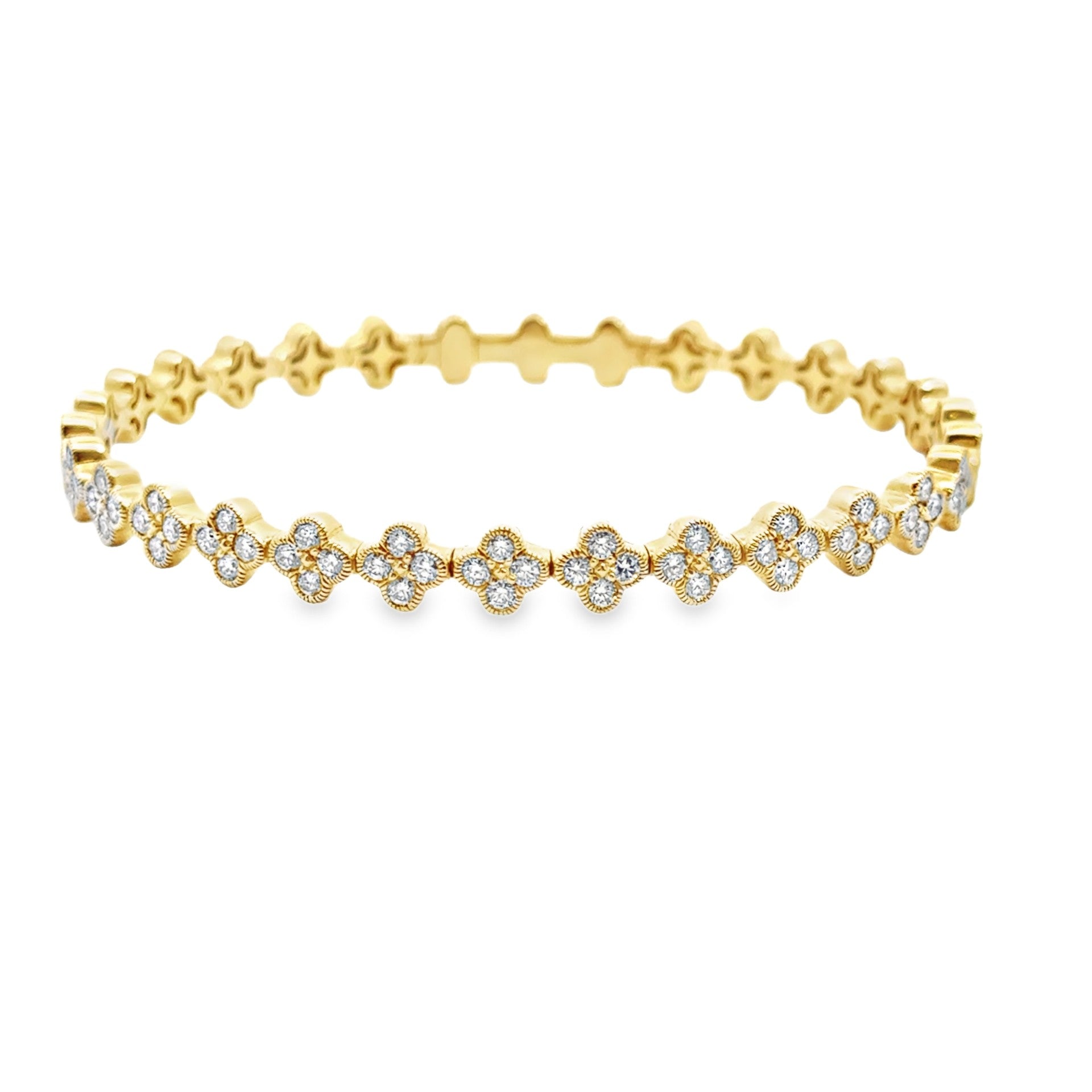 14k white gold diamond flower eternity bangle bracelet 2.75ctw