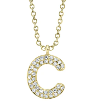 14k yellow gold pave diamond "C" on chain necklace 0.08ctw