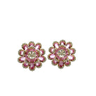 14k yellow gold pear shaped pink sapphire and diamond flower earrings dia 1.67ctw ps 11.20ctw