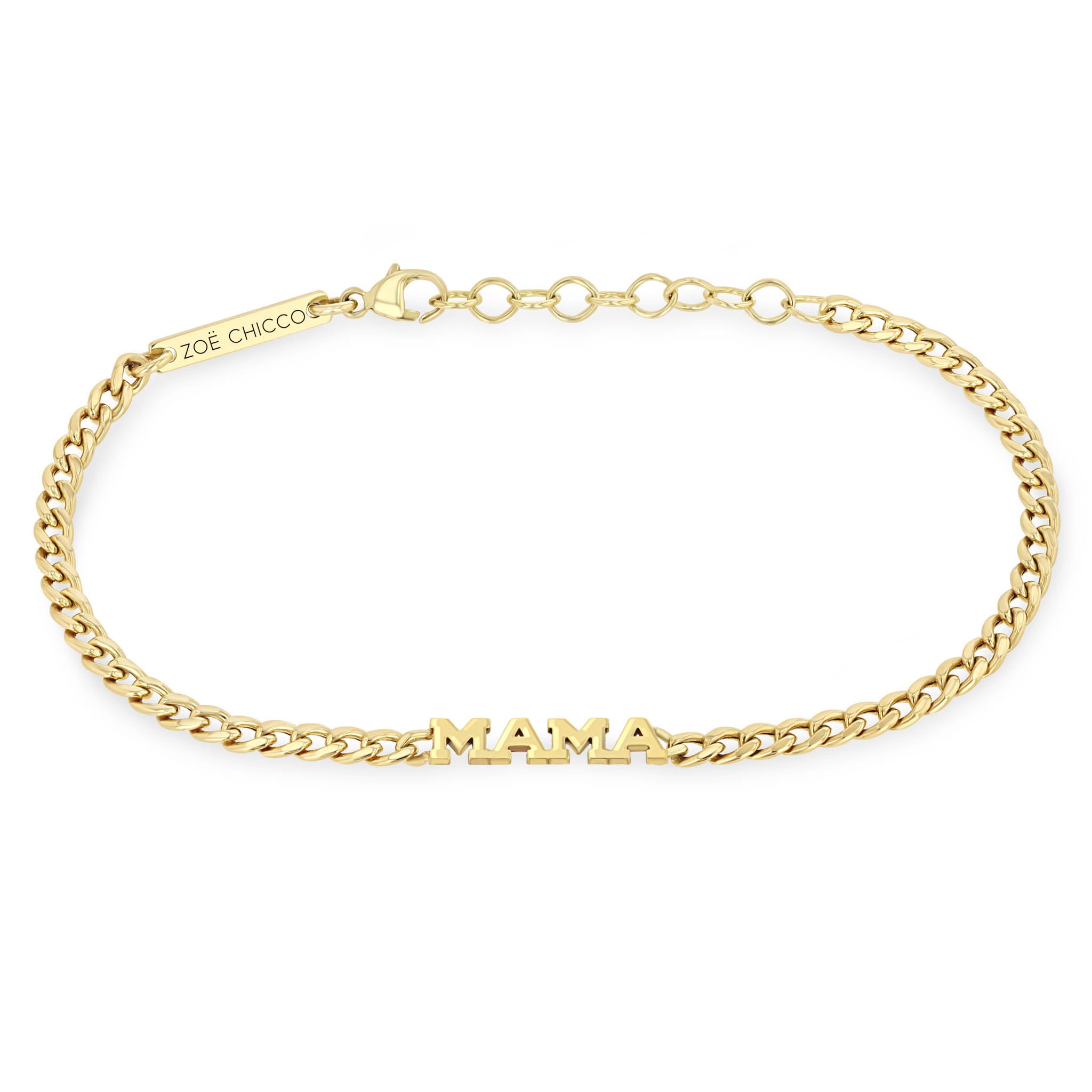Zoe Chicco 14k yellow gold curb link chain with "mama" bracelet