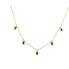 14k yellow gold baguette ruby with diamond halo dangles on chain necklace 16-18"