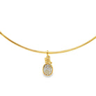 14k yellow gold wire choker with oval pave diamond rope tie pendant 0.38ctw