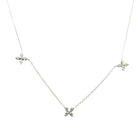 14k white gold 3 station marquis diamond flower shapes on chain necklace 0.35ctw