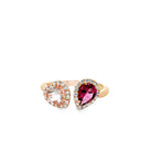 14k rose gold heart shaped morganite with diamond halo and pear shaped pink tourmaline with diamond halo open ring pt 0.67ctw mg 0.73ctw dia 0.25ctw