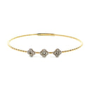 14k two tone beaded flexible bracelet with 3 diamond flower stations 0.31ctw