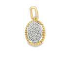 14k two tone oval pave diamond and beaded halo pendant 0.20ctw