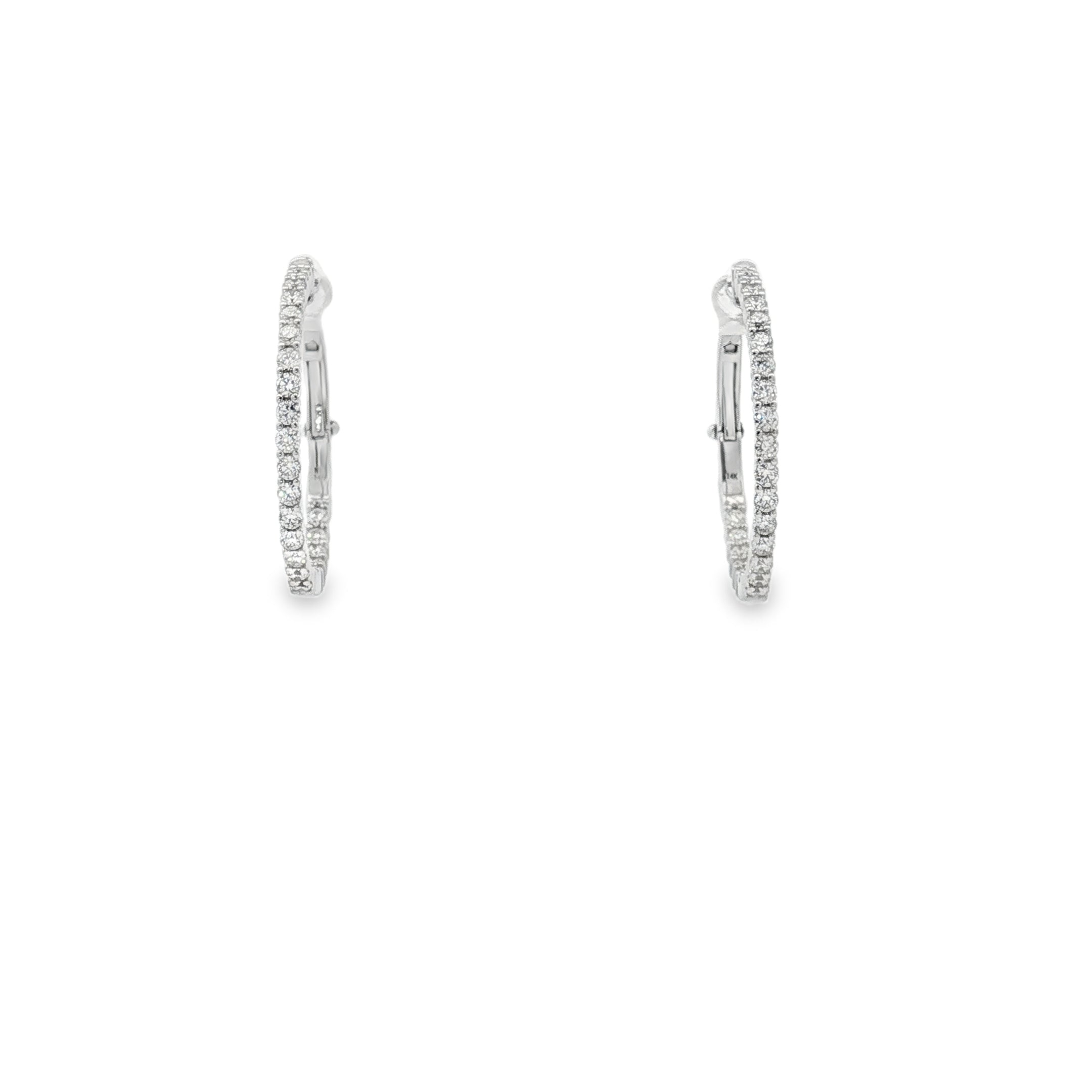 14k white gold inside out diamond hoop earrings .90" 1.45ctw