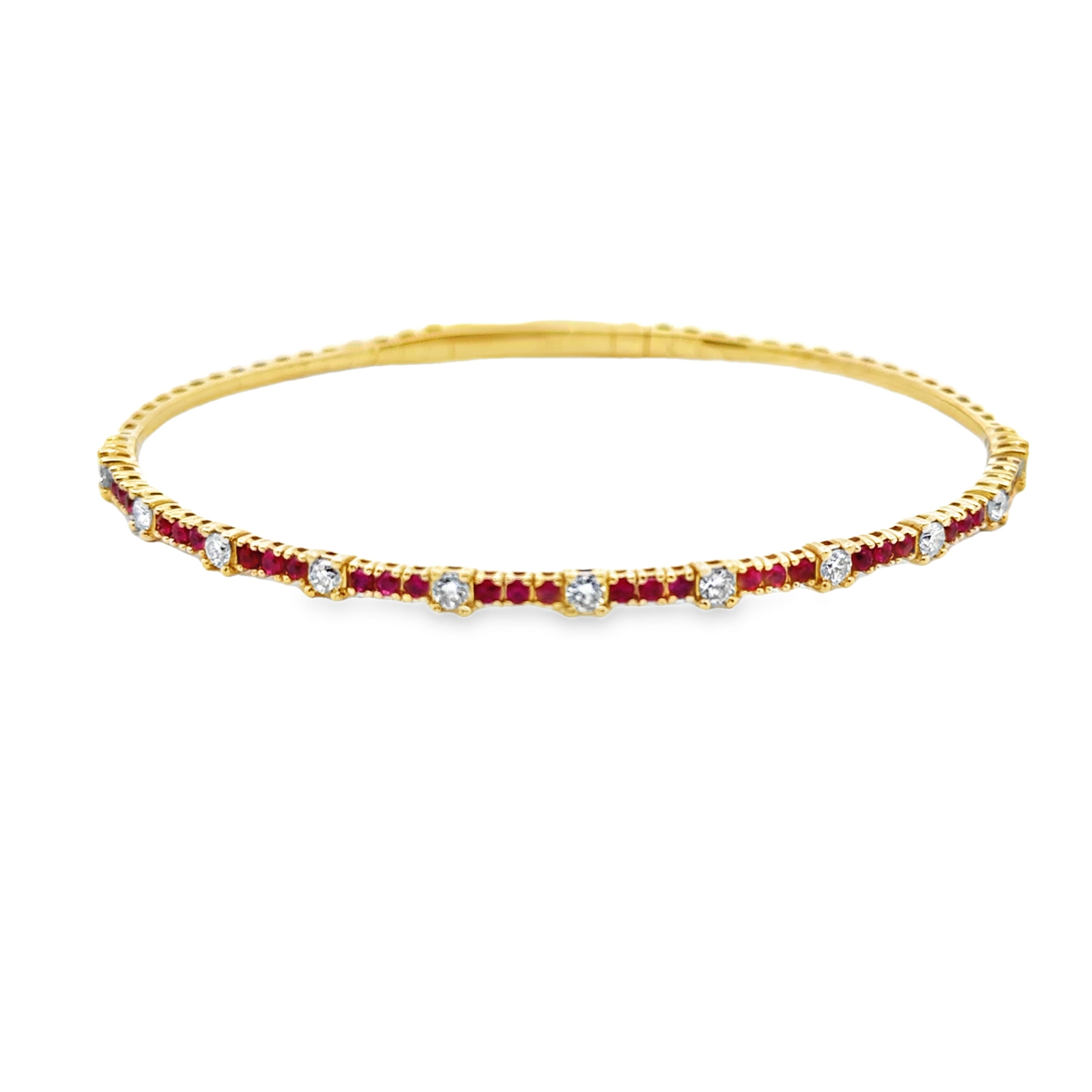 14k yellow gold 11 4 prong set diamonds with rubies between flexible bracelet dia 1.15ctw