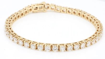 14k yellow gold 4 prong white gold tips diamond tennis bracelet 5.05ctw
