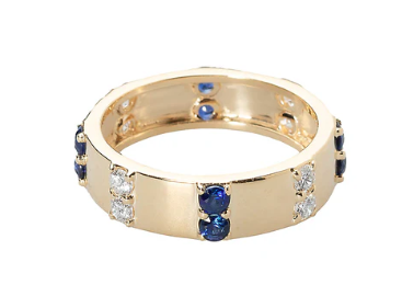 14k yellow gold alternating double diamond and double sapphire stations ring sapp 0.61ctw dia 0.41ctw size 7