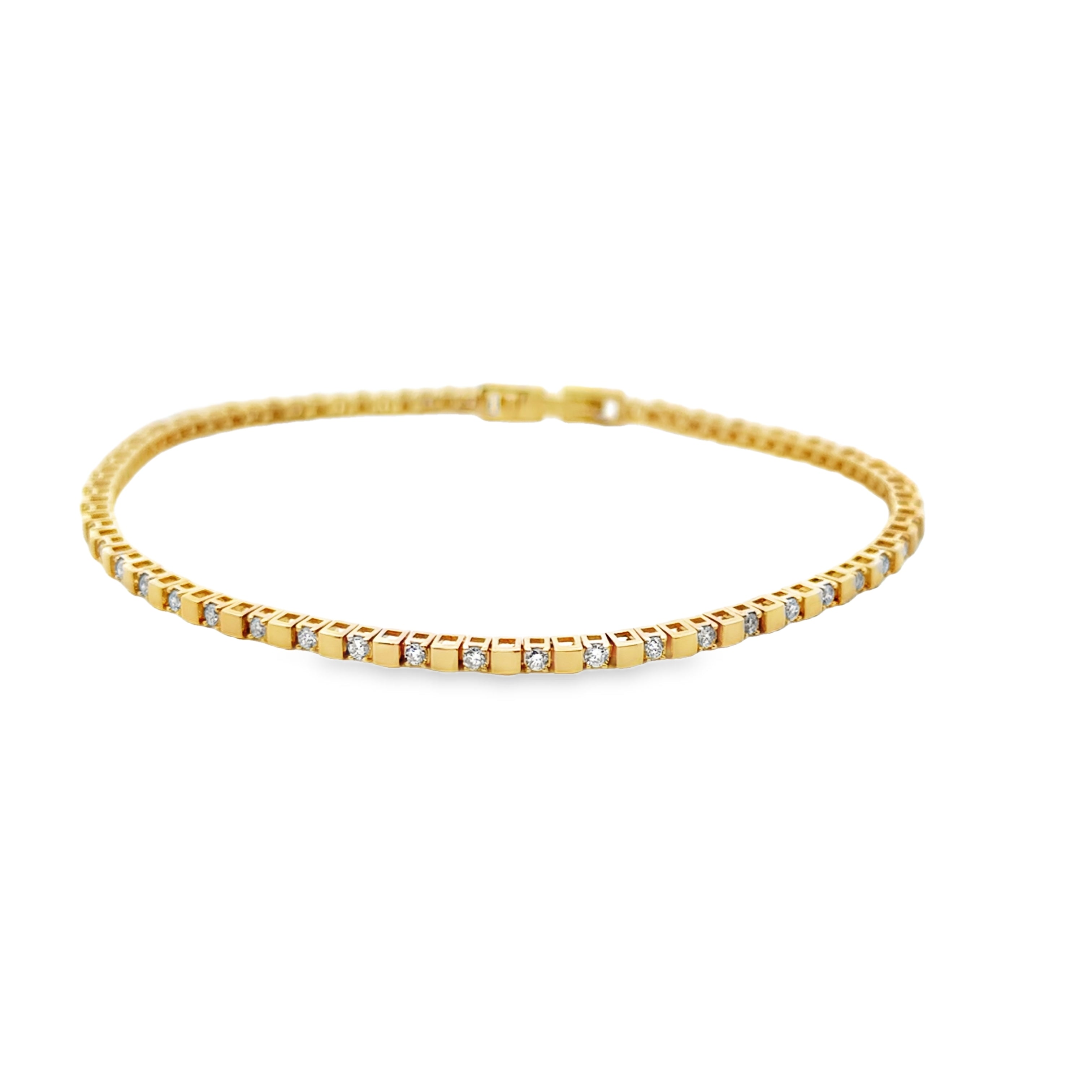 14k yellow gold alternating gold square station and diamond station tennis bracelet 0.75ctw