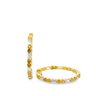 14k yellow gold baguette diamond and round yellow diamond inside out hoop earrings 1.75ctw
