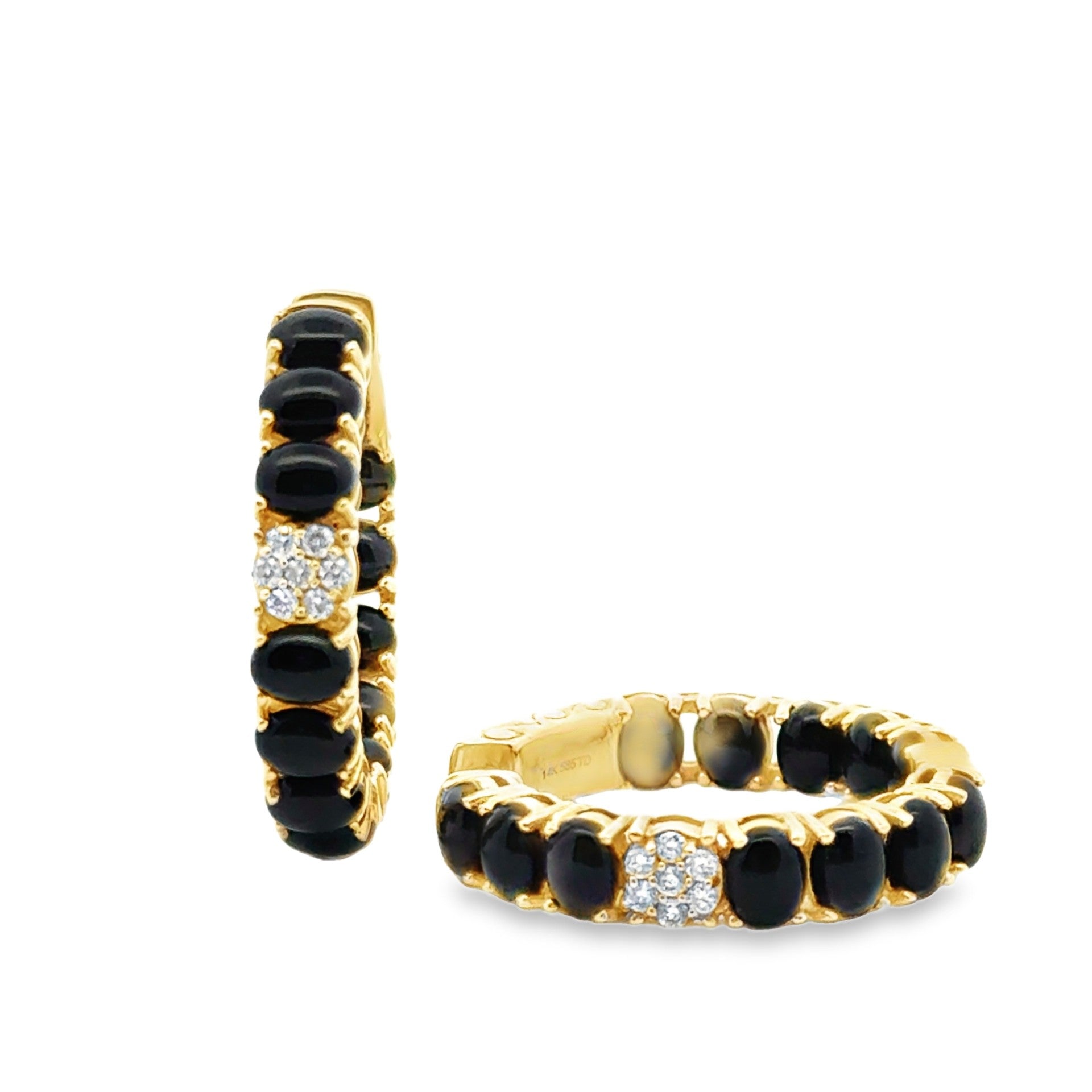 14k yellow gold oval black agate with pave diamond stations inside out hoop earrings (ba 5.95ctw, dia 0.20ctw)