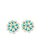 14k yellow gold pear shaped and round center turquoise with diamond detail open earrings dia 1.35