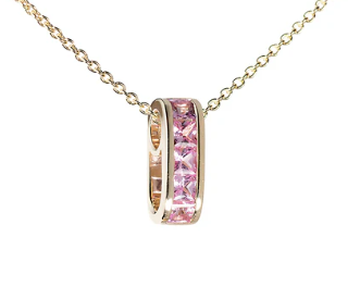 14k yellow gold pink sapphire baguette link on chain necklace 0.29ctw
