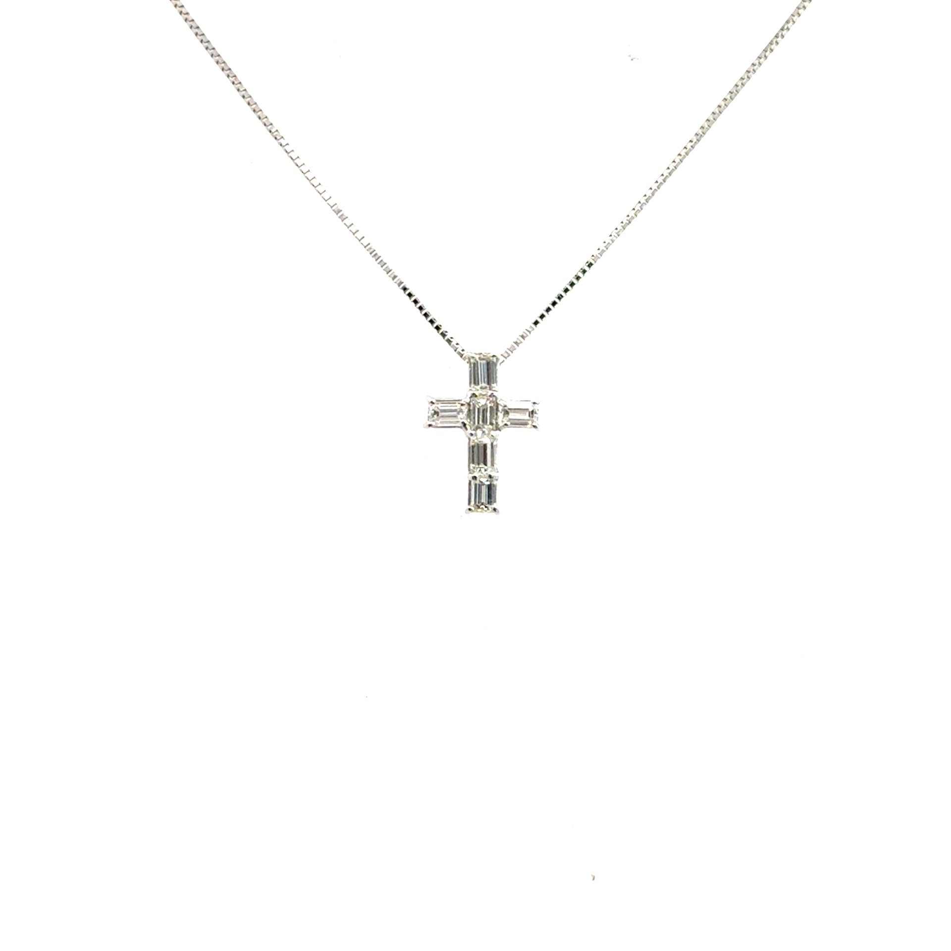 18k white gold 6 emerald cut diamond cross necklace on platinum adjustable chain 0.70ctw 18"