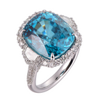 18k white gold cushion cut blue zircon with cadillac diamonds and diamond halo ring Zircon - 19.30CTW, cadillac diamonds - 0.34CTW, diamond 1.12CTW