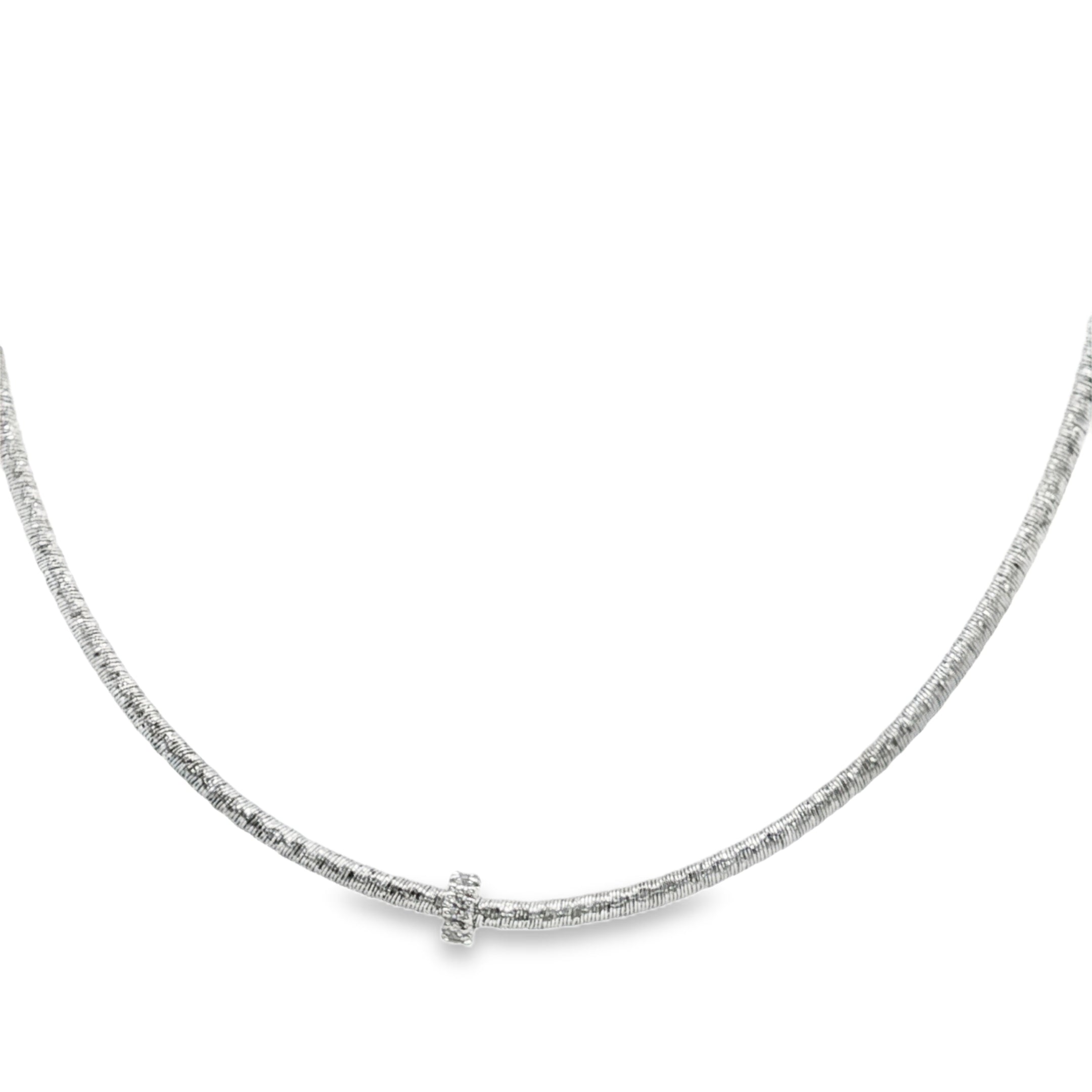 18k white gold wrapped necklace with one diamond rondel 0.10ctw