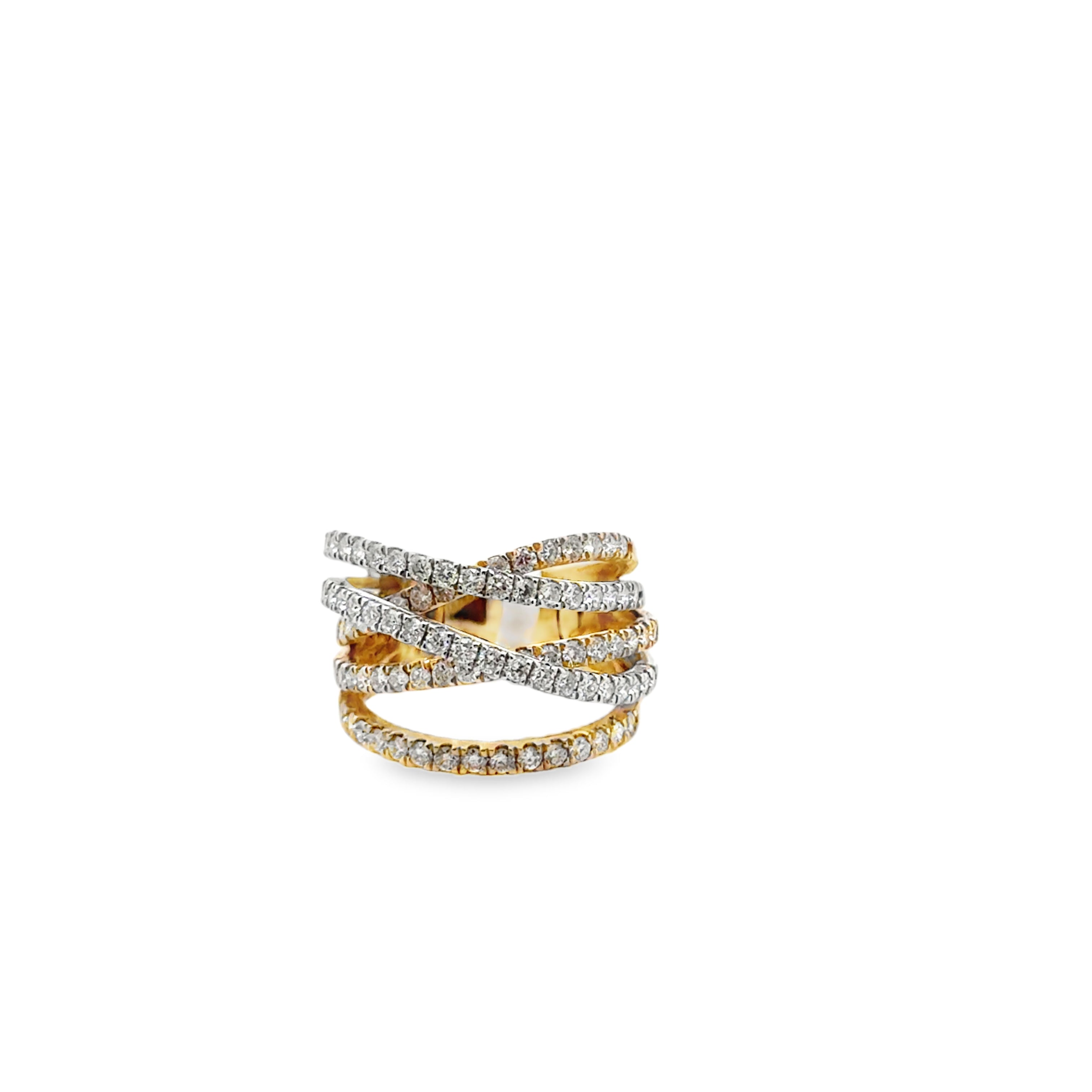 Two tone diamond cross over ring 1.53ctw