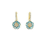 14k yellow gold pave diamond huggies with blue topaz and diamond flower drop earrings dia 0.52ctw bt 2.48ctw