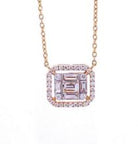 18k yellow gold diamond baguette with halo pendant on chain 0.50ctw