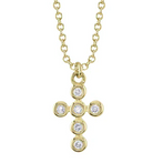 14k yellow gold bezel set diamond cross on chain necklace 0.08ctw