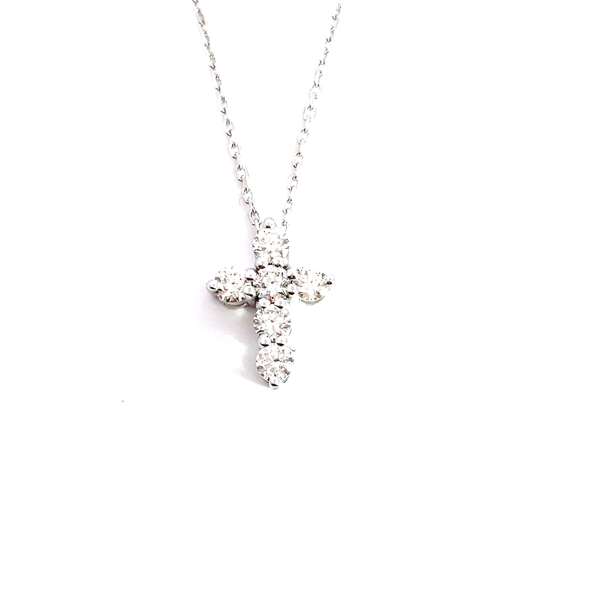 14k white gold 6 round diamond cross on chain necklace 0.97ctw