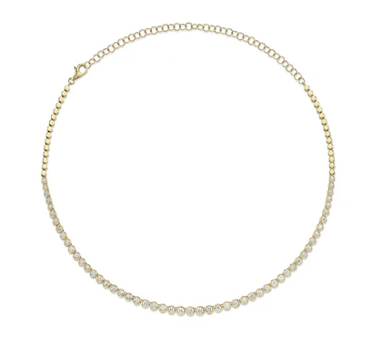 14k yellow gold bezel set diamond tennis necklace 3.53 ctw