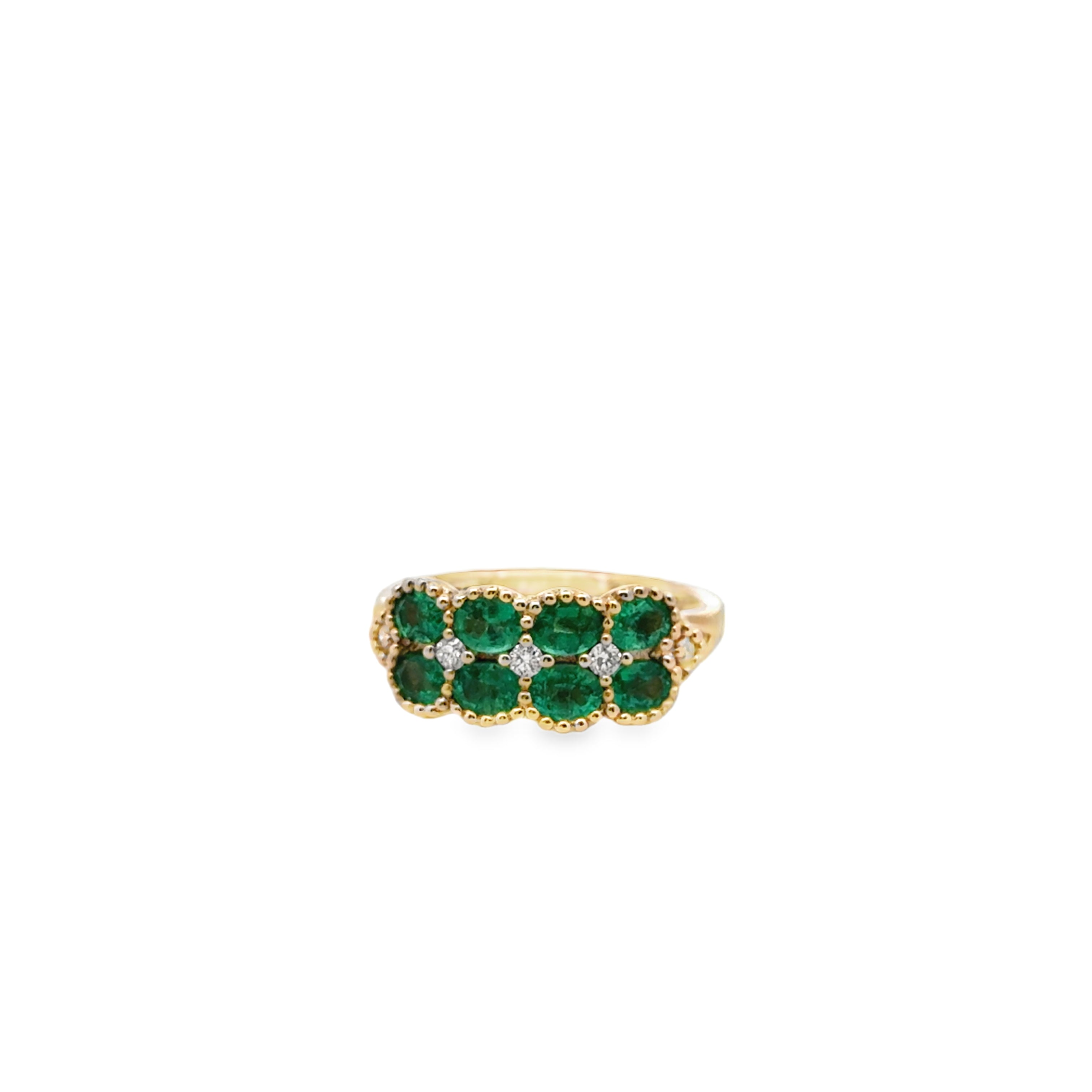 14k yellow gold double row oval east to west emerald with diamonds ring dia 0.10ctw em 1.23ctw