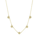 14k yellow gold 5 flower with diamond center stations on beaded chain necklace 0.11ctw