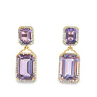 Goshwara 18k yellow gold emerald cut lavender amethyst with diamonds around double drop earrings am 17.97ctw dia 0.49ctw