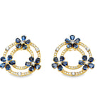 Open Circle Diamond & Sapphire Flower Earrings