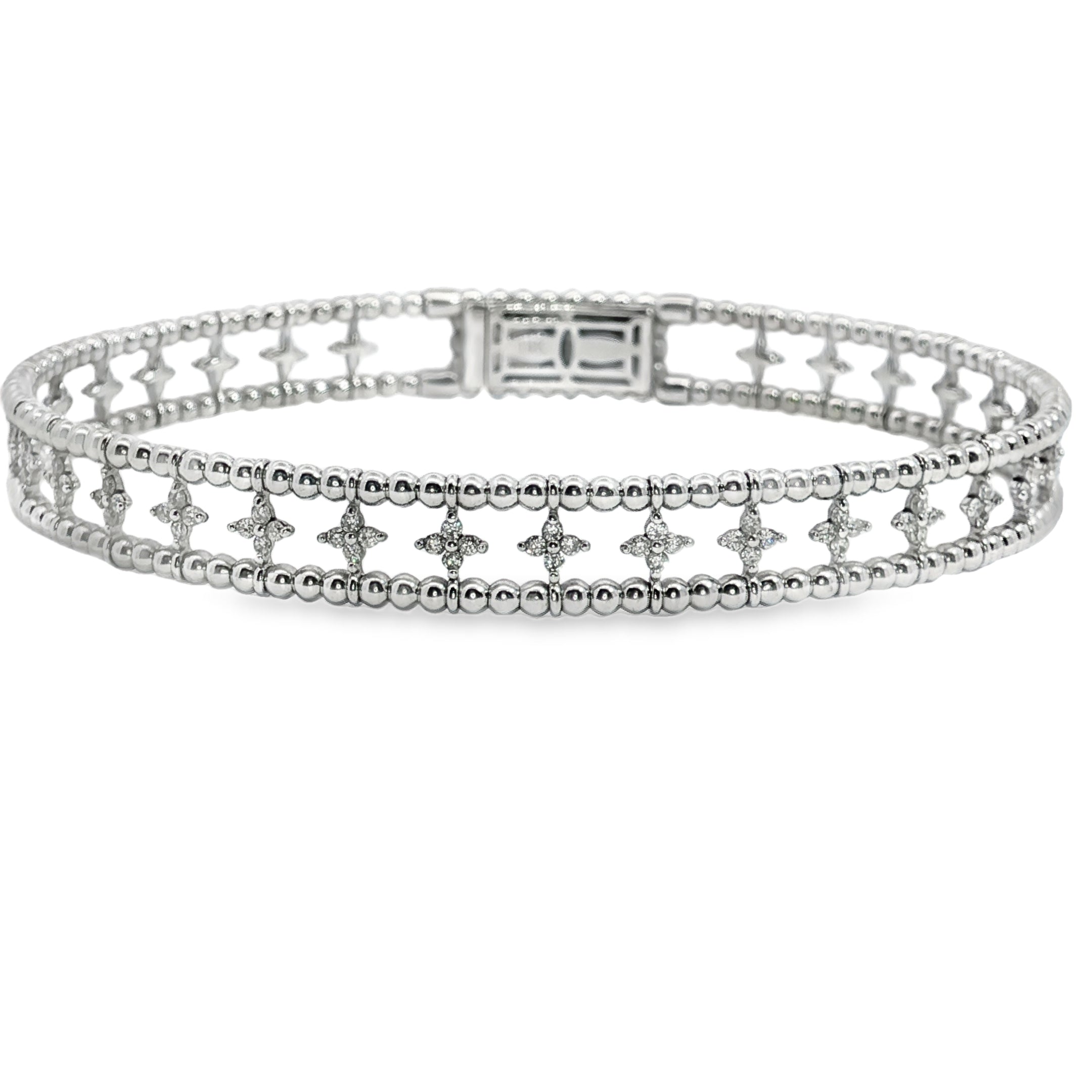 14k yellow gold open beaded flexible bracelet with diamond flower stations in between 0.75ctw
