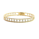 14k yellow gold open beaded flexible bracelet with diamond flower stations in between 0.75ctw