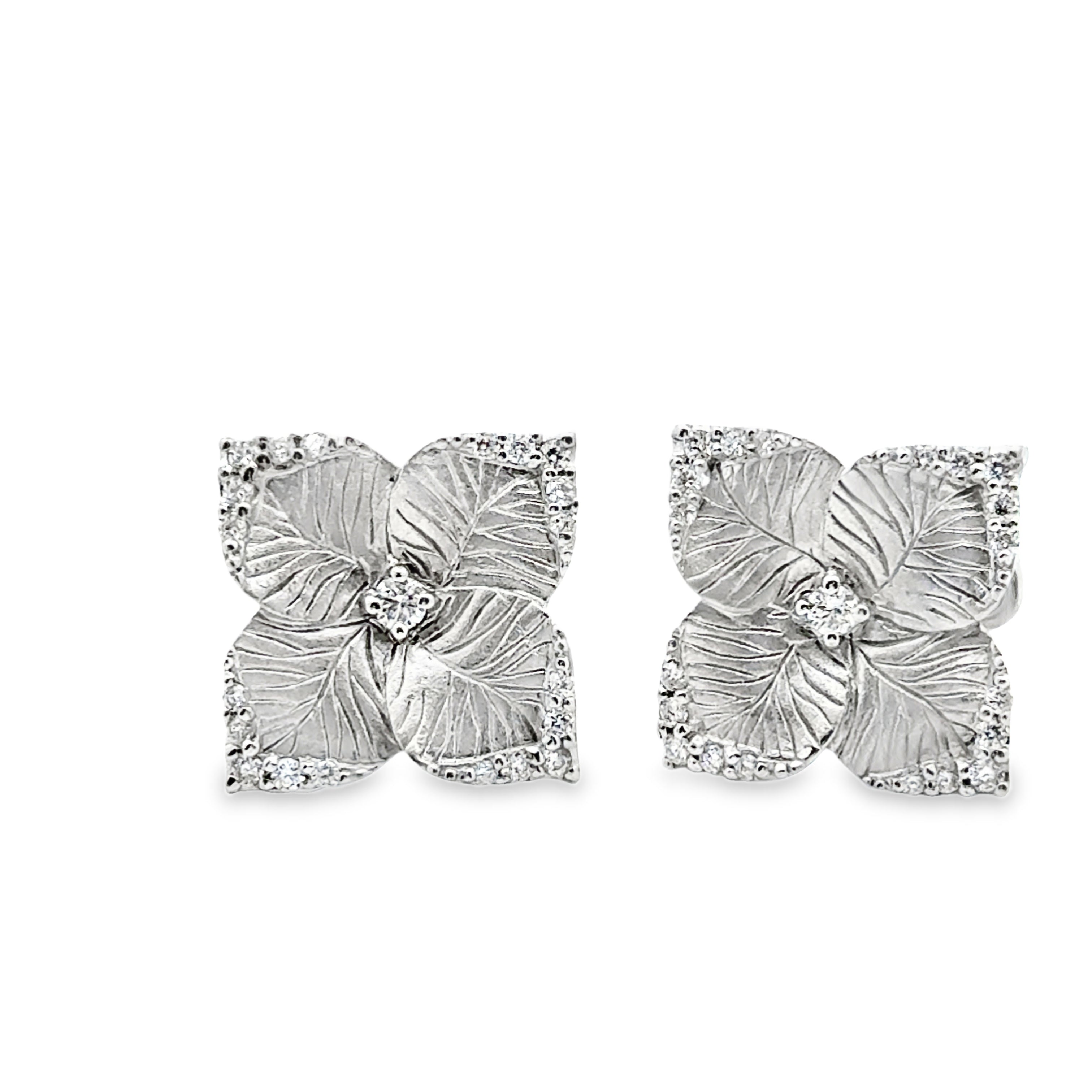 Piranesi 18k white gold satin finish flowers with diamond detail earrings 0.29ctw