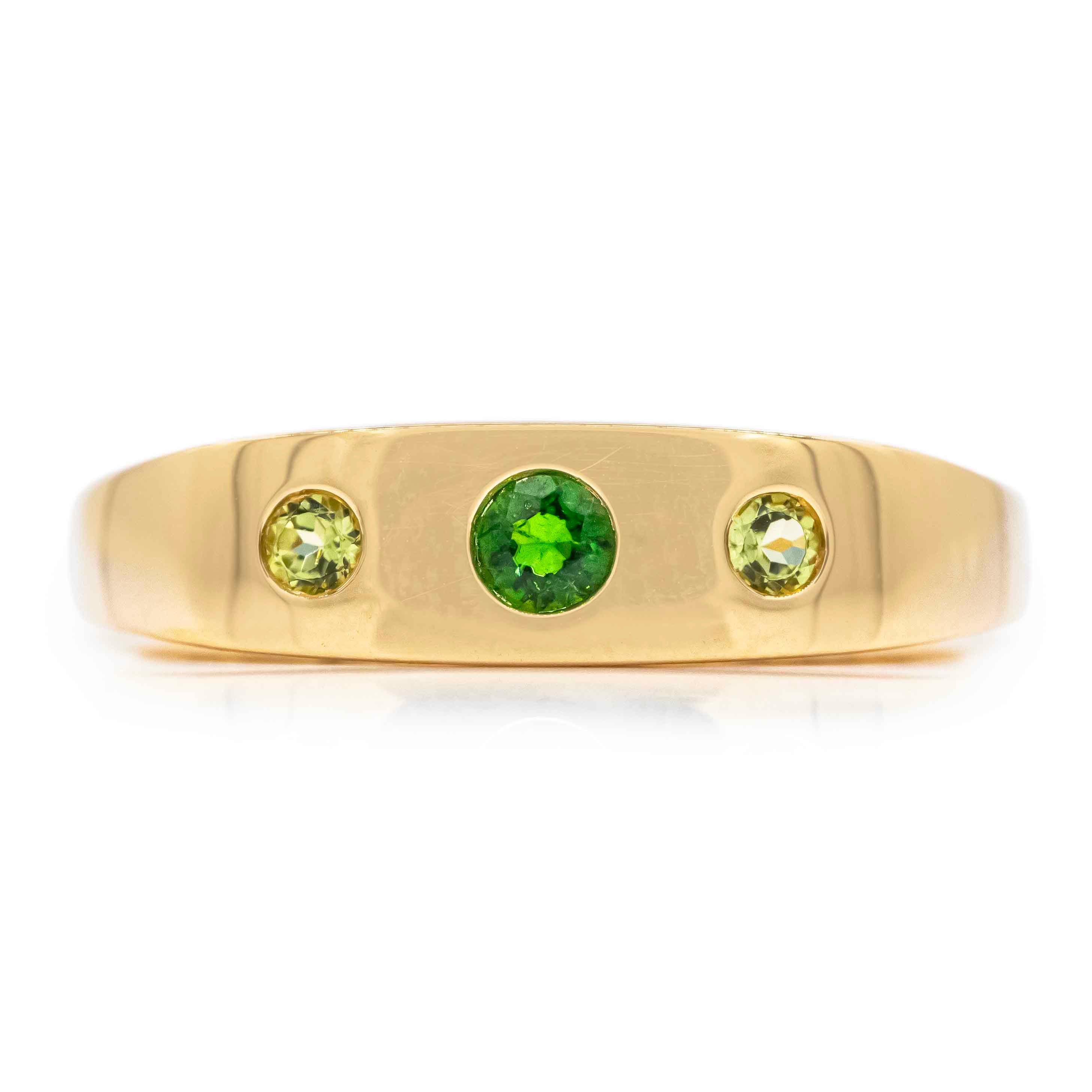 14k yellow gold round green tourmaline and peridot in wide band ring size 7