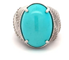 18k white gold cabochon Persian turquoise with diamond detail and filigree ring size 7 dia 0.80ctw turq 13.40ctw