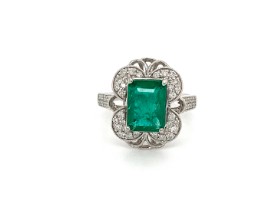 Platinum Orianne emerald cut emerald ring (2.32CTW) with diamond detail (0.45CTW) - Size 8