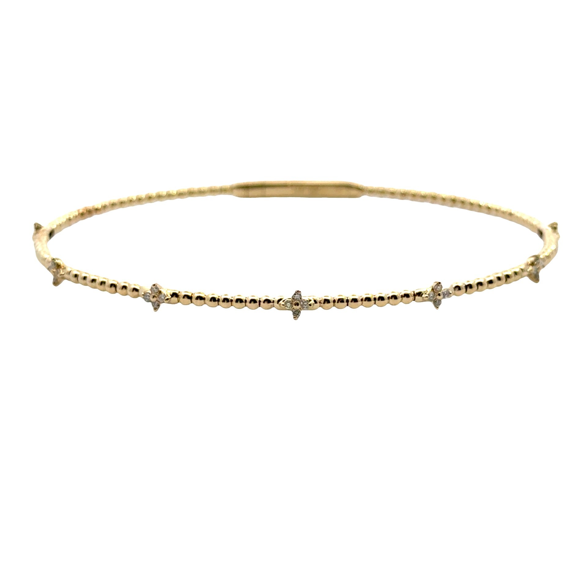 14k two tone beaded flexible bracelet with 7 diamond star stations 0.17ctw