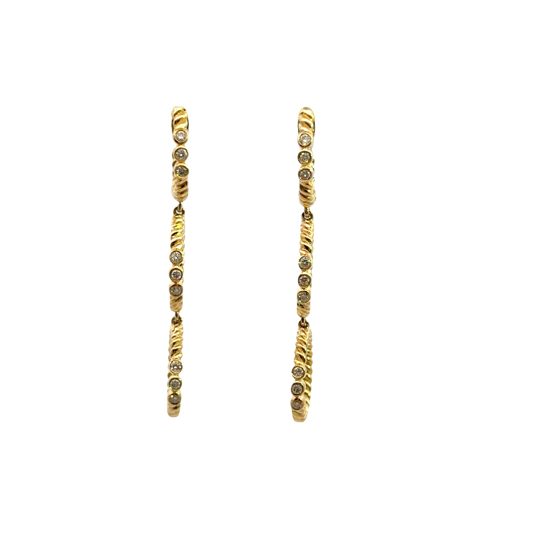 14k yellow gold 3 open rope circle drops with bezel set diamonds dangle earrings 0.21ctw