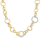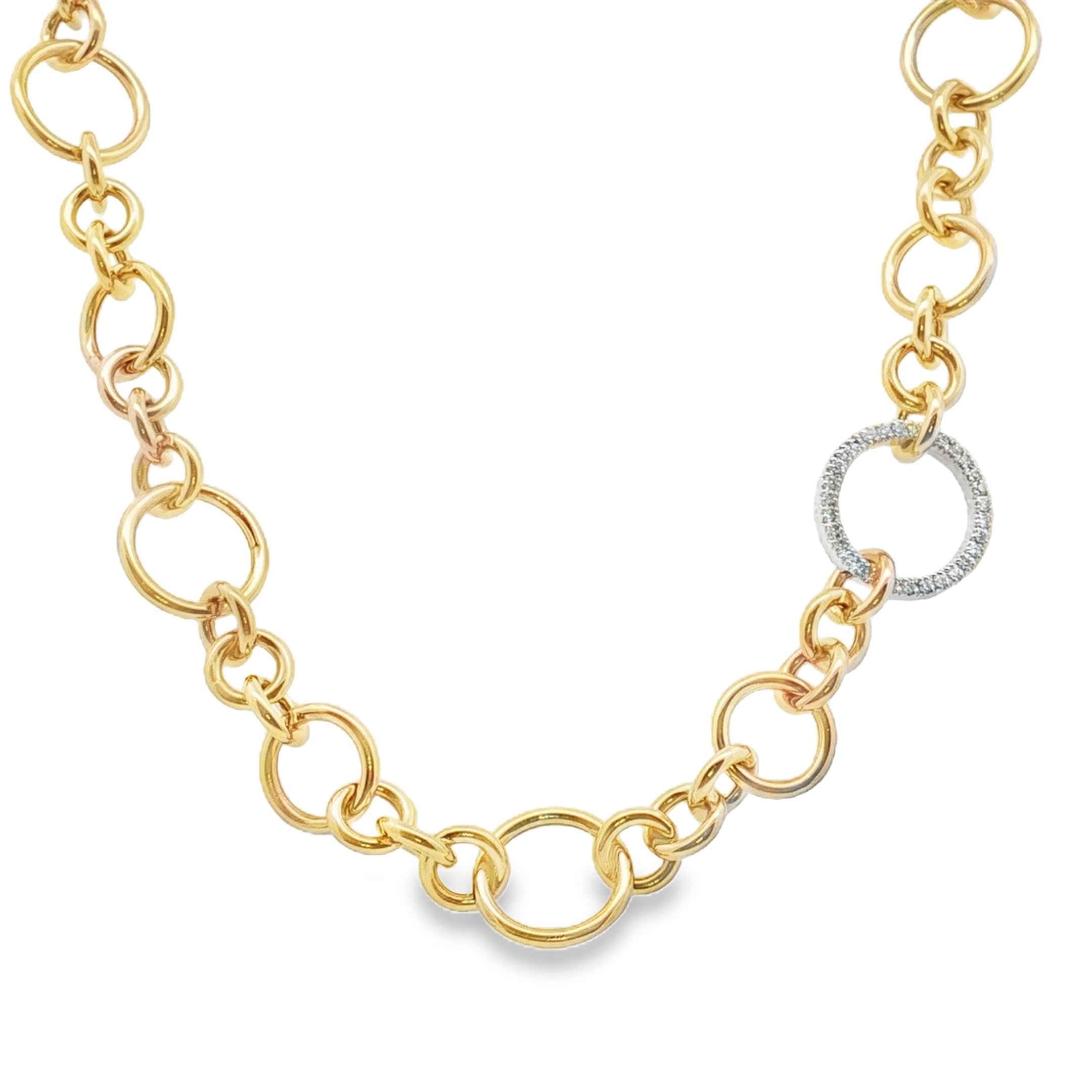 14k yellow gold small and medium round link with open round pave diamond circle link necklace 17"